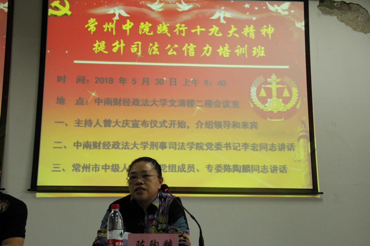 5月30日,由我院主办的常州市中级人民法院践行十九大精神,提高司法公信力培训班开班仪式在文清楼二楼会议室举行。