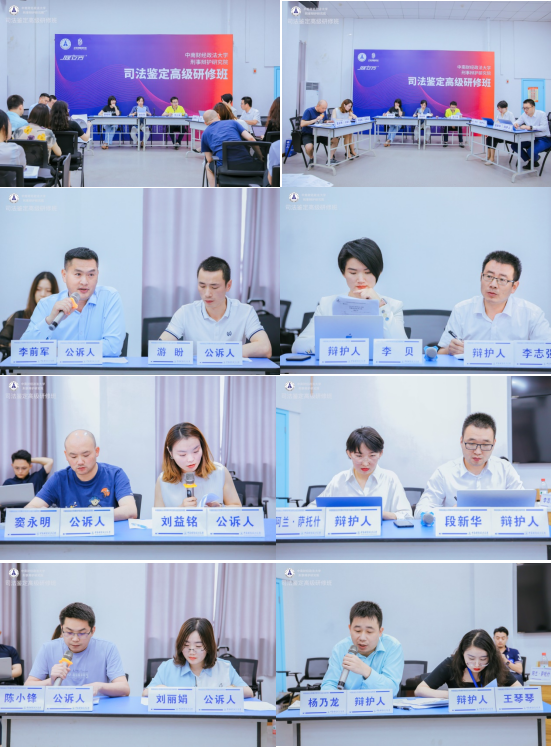 711日下午,司法鉴定高级研修班学员正式进入“理论讲解+法条解析+研讨互动+模拟演练”研修模式的最终环节,即混合模拟审判。舒玲华老师、娄秋琴律师、李少波老师担任评委,各研修小组派出组员分饰公诉人和辩护人,以人体损伤司法鉴定意见的质证为案例,共进行3轮对抗式混合模拟审判。活动过程中,学员们灵活应用研修班所学的司法鉴定专业知识,以司法鉴定质证方法论及实务经验分享为思考路径,结合案件线索快速、准确地探索事实真相,从形式和实质等多维度提出质证意见。在诉辩双方的唇枪舌战之中,学员们的研修成果得到进一步的检验。