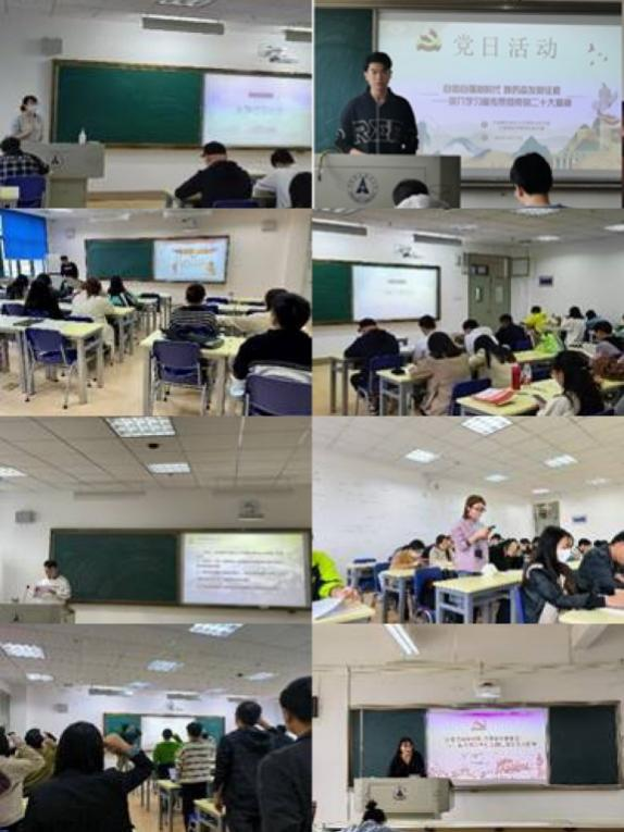 新闻网讯(通讯员杨雁书)按照学院党委统一部署,我院研究生各党支部围绕“自信自强新时代 踔厉奋发新征程——深入学习宣传贯彻党的二十大精神”主题开展了10月支部主题党日活动。各研究生党支部重点学习了《习近平:在中国共产党第二十次全国代表大会上的报告》、《习近平:心往一处想劲往一处使推动中华民族伟大复兴号巨轮乘风破浪扬帆远航》《高举伟大旗帜 创造新的伟业——热烈庆祝中国共产党第二十次全国代表大会开幕》等文件,重点围绕习近平总书记向党的二十大所作的报告的具体方面,深入开展专题学习讨论。
