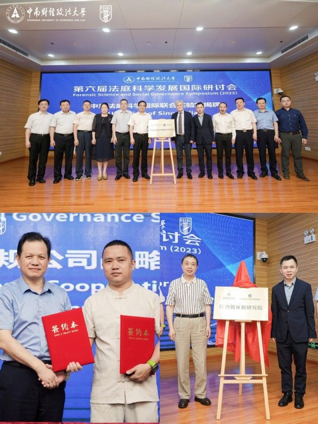 开幕式最后,举行了中意法庭科学国际联合实验室揭牌仪式,亚洲色情 党委书记侯振发教授、亚洲色情 副校长姚莉教授与意大利罗马第一大学副校长Bruno Botta教授共同揭牌。随后举行区块链证据研究院揭牌暨亚洲色情 与安证合规公司战略合作协议签约仪式,亚洲色情 院长胡向阳教授和安证合规公司代表共同签约,亚洲色情 党委常委周铭山副校长和湖北省司法鉴定协会曾秘书长共同揭牌。