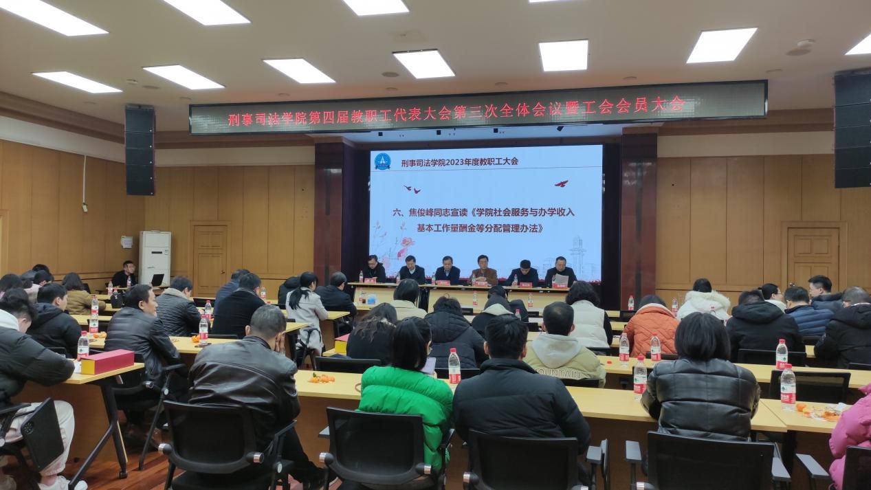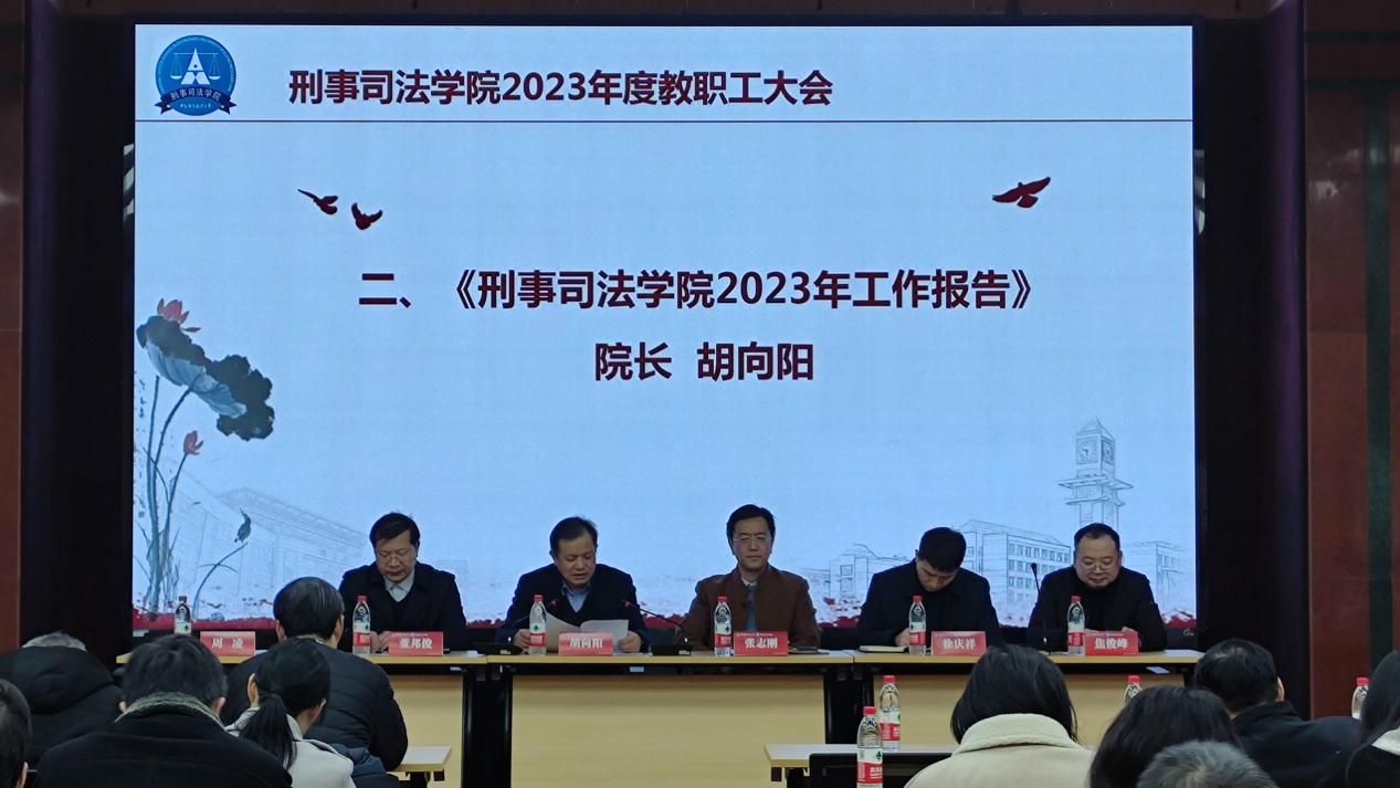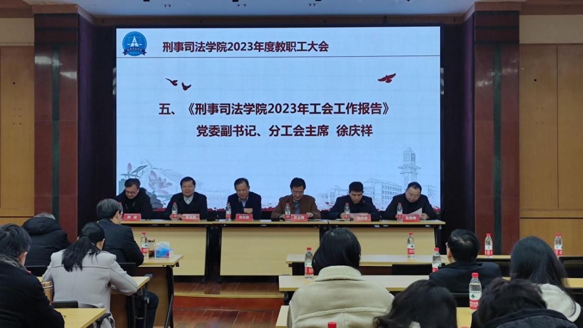 在年度工作报告中,胡院长从党建引领、凝心铸魂、组织建设、人才培养、学科建设等方面详细介绍了过去一年来学院各项工作开展情况及取得的突出成绩,并向学院全体师生员工致以崇高的敬意和衷心的感谢。2023年,学院国家社会科学基金项目立项数再创佳绩,产出高水平著作、期刊论文、教材量质齐升,获2023年国家级教学成果奖团体二等奖,获评第二批国家级一流本科课程1门、省级一流本科课程2门,6人获学校“七一表彰”,“认知法庭科学”专业与金融犯罪治理实验班顺利推进等。在财务工作报告中,胡向阳院长向大会介绍了学院2023年度财务管理情况和经费收支及执行情况,并就社会服务、学术科研、培训等方面的收支情况做了具体说明。