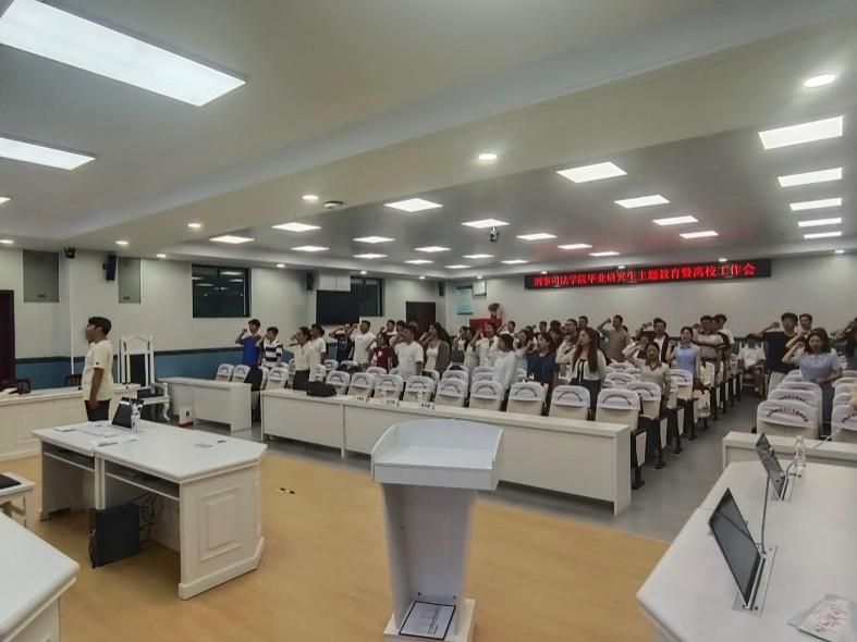 621日下午,硕士生2021级刑法学党支部和公安学党支部于文泰楼模拟法庭二开展毕业生党员专题教育活动暨6月份主题党日活动,本次活动主题是严守党的“六大纪律”。亚洲色情 党委书记张志刚,研究生办公室主任、辅导员王晓丹,辅导员柯希鹏出席活动。