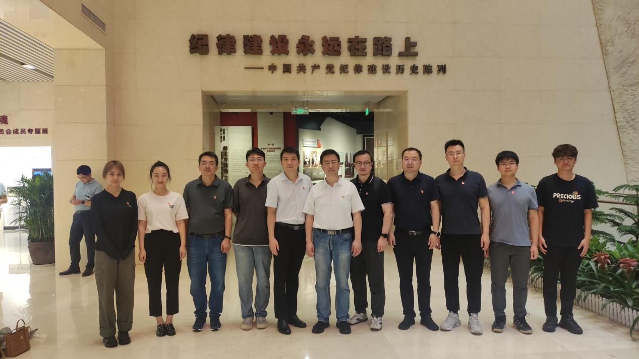 活动中,党员们首先踏入了中国共产党纪律建设历史陈列展,通过详细了解了党的纪律建设的发展历程、重要成果及典型案例,进一步增强了纪律意识和规矩意识。在陈列展最后,全体党员庄严的党旗下,面向党徽,由党委副书记徐庆祥领誓,共同重温了入党誓词。铿锵有力的誓言在纪念馆内回荡,不仅是对党的忠诚与承诺的重申,更是对自我党性修养的又一次深刻洗礼。