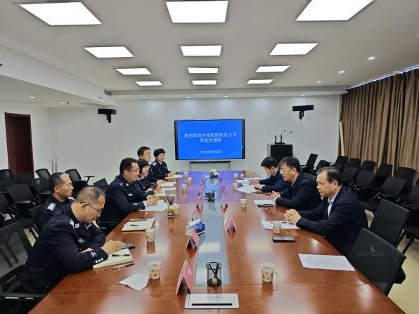 4月24日上午,调研组赴中央司法警官学院调研。中央司法警官学院人事处处长孙海杰、人事处副处长王揆鹏、监狱学学院院长王雪峰、法学院院长赵亮等与调研组围绕人才培养、优秀毕业生推荐、院院合作等进行了深入交流。