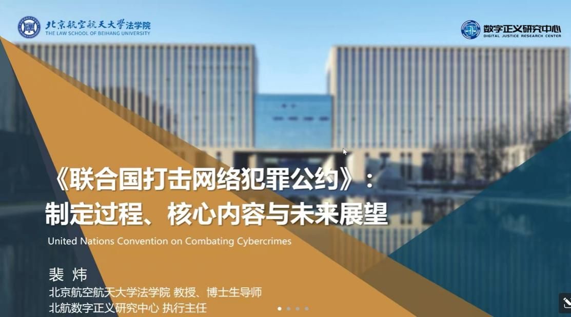 新闻网讯(学生通讯员 王佳忆)6月26日晚7时,第一期中南刑事司法大讲堂——“《联合国打击网络犯罪公约》(以下简称“公约”):制定过程、核心内容与未来展望”主题学术讲座于线上顺利举办。本次讲座特邀北京航空航天大学法学院教授、博士生导师裴炜担任主讲人。