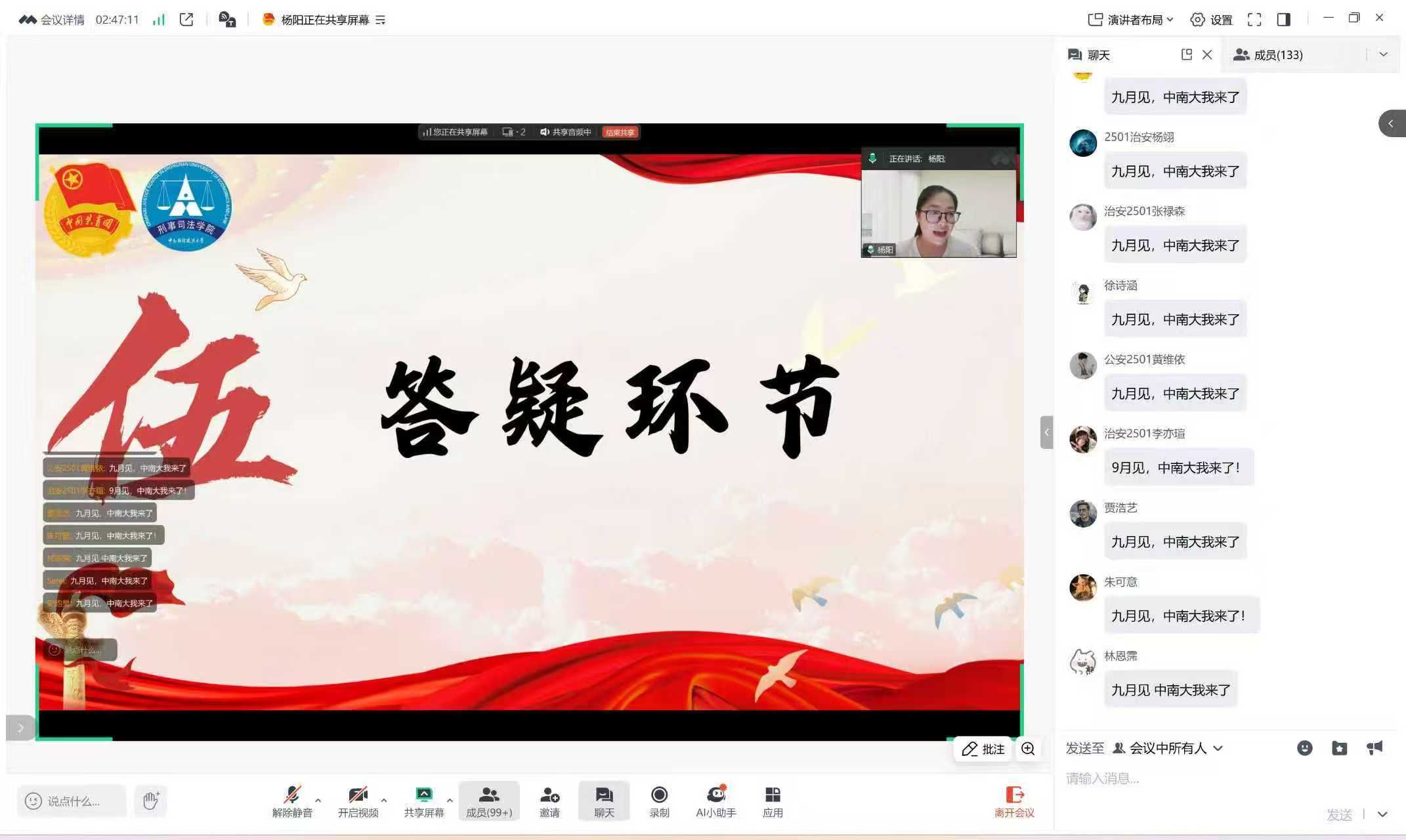 最后,在同学们一条条“中南大,我来了”的走心弹幕中,本次活动进入尾声。这次主题云团课不仅带给大家精神上的洗礼,还充实了新生们对大学的了解。希望2025级新生能不负青春韶华,挺膺青年担当,在中南大的广阔天地中书写属于自己的新篇章。