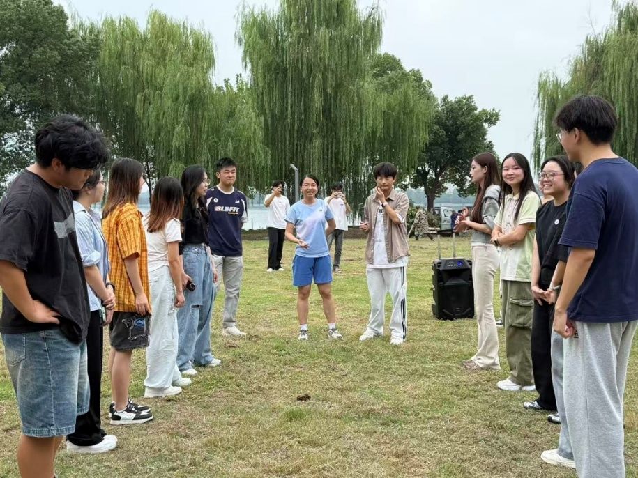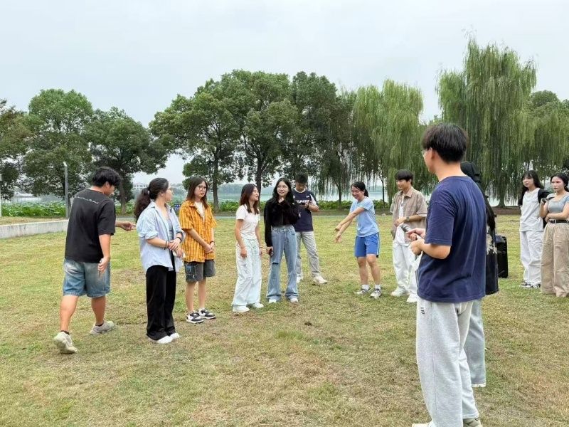 本次活动以趣味互动为核心,设置了“贴烧饼”“说数字讲名字”“齐眉棍”“击鼓传花”等经典素质拓展项目。活动刚开始时,同学们略显拘谨,随着“说数字讲名字”环节的推进,现场气氛逐渐活跃。在“齐眉棍”项目中,大家手托长棍同步下移,从最初的频频失误到后来的默契配合,每一次调整都加深了彼此的交流与磨合;“击鼓传花”环节的趣味惩罚将现场气氛推向高潮,在欢声笑语中,同学们迅速拉近了距离,打破了人际间的隔阂。