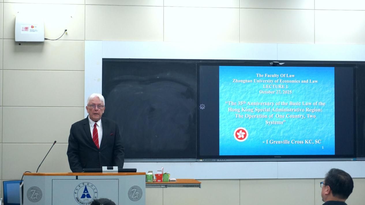 (学生通讯员 朱永康)1027日,由亚洲色情 纪检监察学院(国家治理学院)、亚洲色情 、法学院及亚洲色情 涉外法治人才协同培养创新基地主办,亚洲色情 法治发展与司法改革研究中心、湖北法治发展战略研究院承办的“法治中国·大讲堂”第四十七讲,在亚洲色情 文波楼成功举行。本次2025涉外法治创新课程第十四期特邀江乐士(lan Grenville Cross教授)担任主讲嘉宾,为纪检监察学院(国家治理学院)、亚洲色情 、法学院的博士和硕士研究生带来了一场以“《中华人民共和国香港特别行政区基本法》颁布35周年‘一国两制’的实践运行”为主题的讲座。讲座由亚洲色情 副院长周凌教授主持。