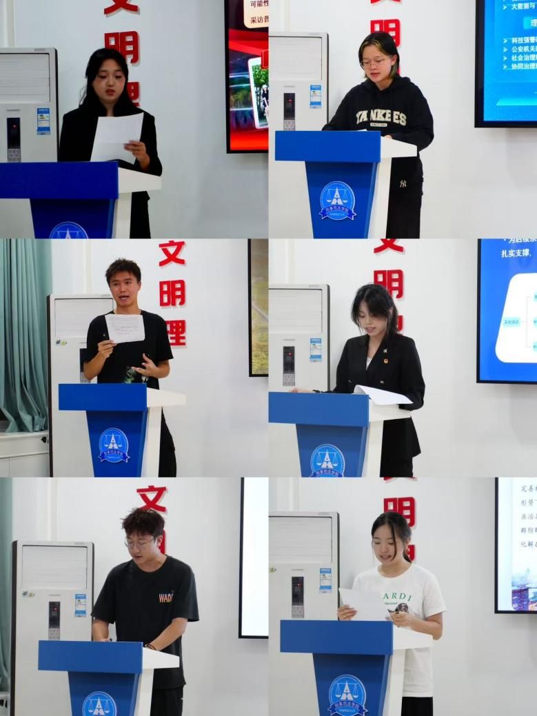 在答辩环节,“解码刑动实践队”和“薪火非遗实践队”两支队伍分别聚焦于红色基因与非遗技艺,为传统文化注入时代价值;“早起去采茶”实践队聚焦长阳土家族自治县茶产业,探索文旅融合新模式;“峰光探香”实践队总结出电白沉香产业“文化+科技+文旅”三元驱动模式;“渠畔新红旅”实践队挖掘红旗渠红色文旅价值;“夏临十八洞”实践队解码十八洞村党建引领与产业创新经验,全面呈现学院在乡村发展与文化传承中的积极作为;“净网砺剑”实践队深入调研国家网安体系;“智慧警务”实践队绘制智慧警务基本框架;“青春护睦”实践队探索社区警务规范化发展;“扬帆逐梦”实践队聚焦农村电信诈骗问题开展反诈普法宣传,为推动基层治理现代化贡献专业智慧。“智绘缉影”实践队赴广西柳州调研AI画脸技术在侦查中的应用;“税安法衡”实践队则在武汉多家律所围绕虚开增值税专用发票罪开展司法治理研究。