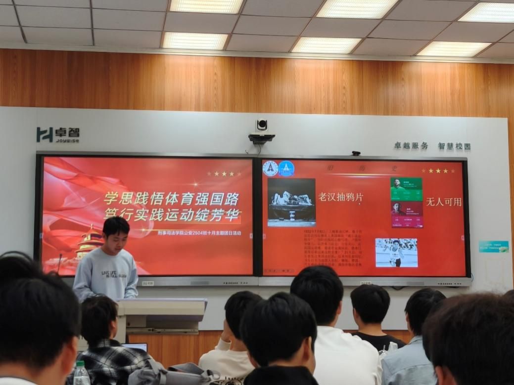 新闻网讯(学生通讯员 安宁 何字颖 李明阳 柯维蓁)10月29日,公安2504班团支部以“学思践悟强国路,笃行运动绽芳华”为主题,开展十月主题团日活动。