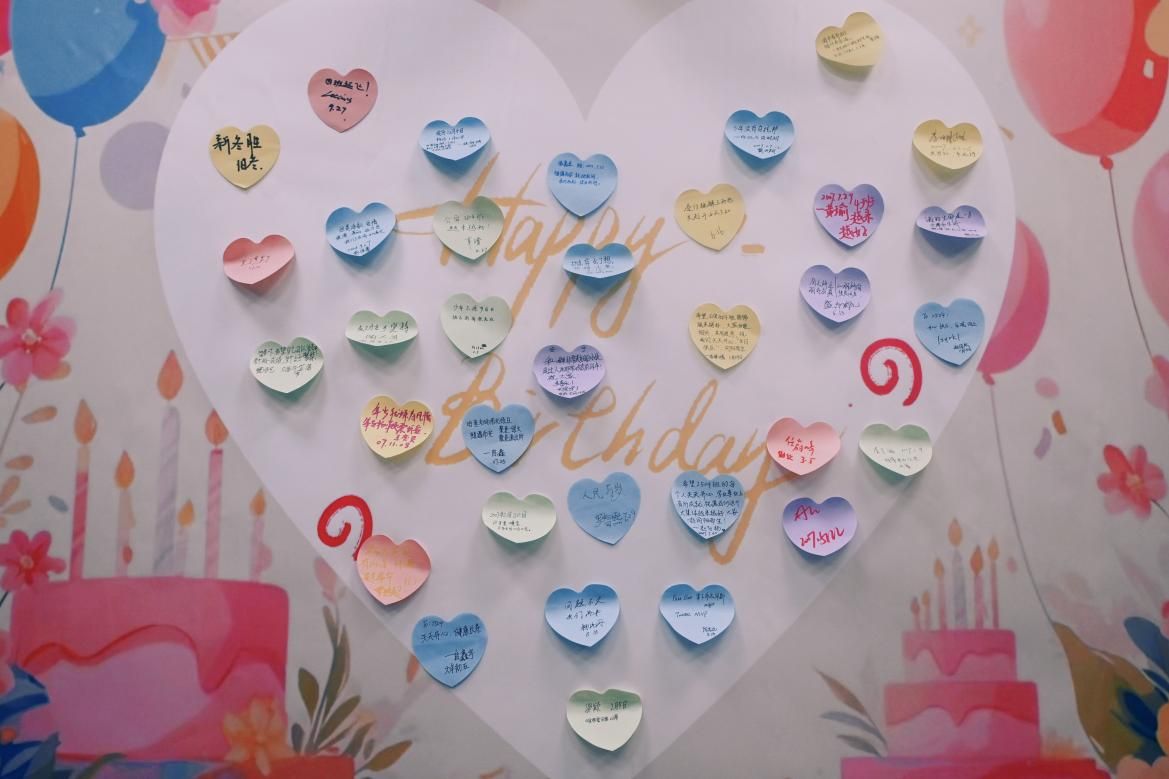 活动的压轴环节“同过一个生日”充满了温馨与仪式感。班委们提前准备了精美的生日海报和定制小蛋糕。在《向阳而生》的背景音乐中,每位同学在便利贴上写下对班级的祝福、对同窗的期许,并附上自己的生日日期,共同贴在海报的“心”型区域,以此为“公安2504班”这个集体庆生。班长和心理委员代表班委团队表示,后续将为每位同学送上独家的生日祝福,把爱留在公安2504班。写有班徽的海报与贴满祝福的“心”墙,共同见证了班级的正式启航。