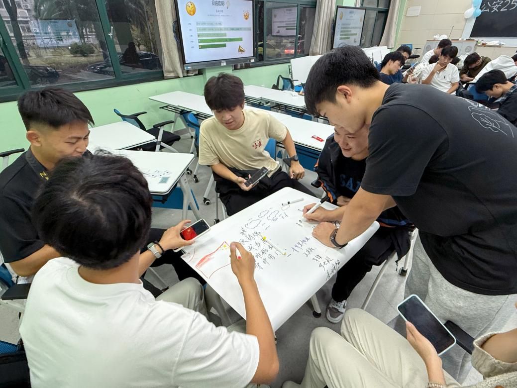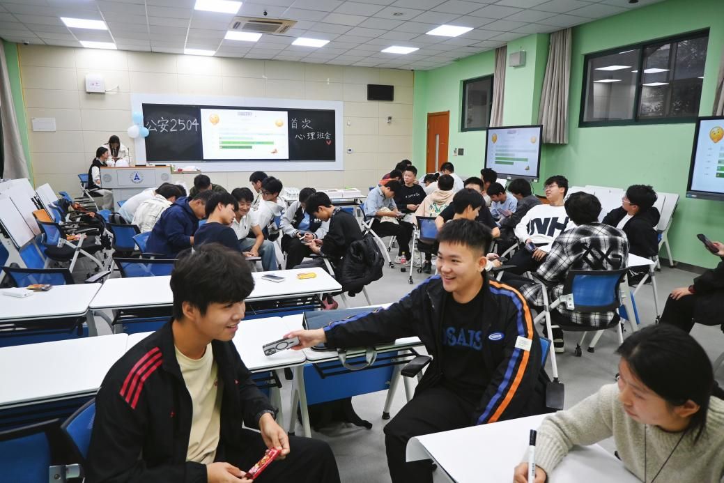 随后进行的“赋能自我介绍”环节创意十足。同学们通过抽取扑克牌进行随机分组,并以“我叫……,我有很多优点,在这里就只告诉你们三条……”的固定句式进行分享。这种充满自信与真诚的自我介绍方式,不仅让同学们快速记住了彼此的特点,更在掌声与欢笑中增进了解,发现了身边同学更多的闪光点