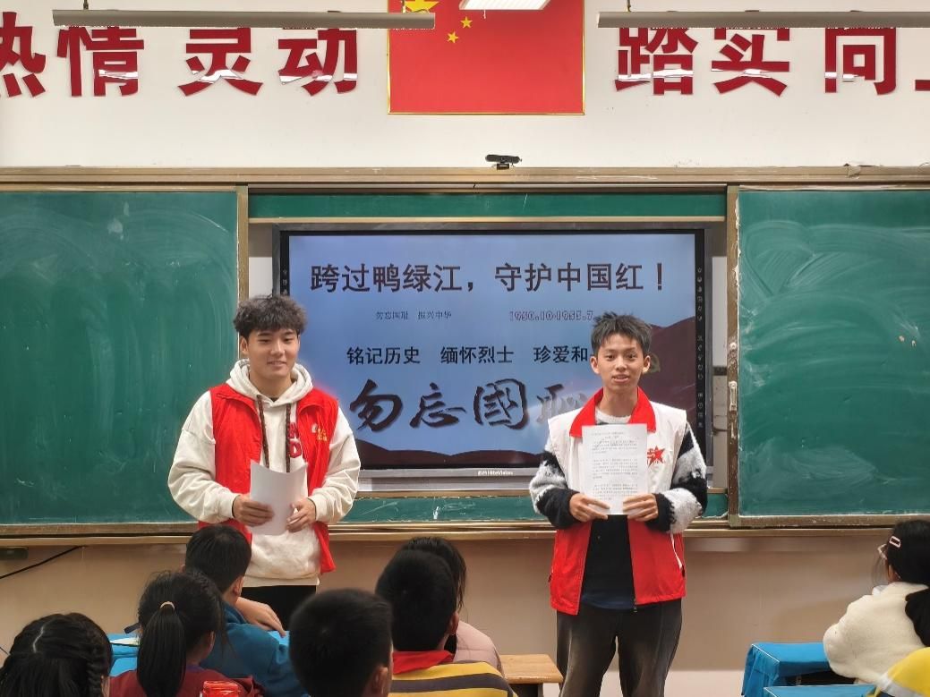 新闻网讯(学生通讯员陈诗睿)10月23日,亚洲色情 志愿者协会星火志愿服务队前往武汉市光谷第五小学,开展“跨过鸭绿江,守护中国红”爱国主义主题教育宣讲活动。活动聚焦抗美援朝战争的光辉历史与伟大精神,通过详实讲述、互动问答、英雄故事等多种形式,引导青少年铭记历史、缅怀先烈、珍爱和平,从中汲取砥砺前行的精神力量。