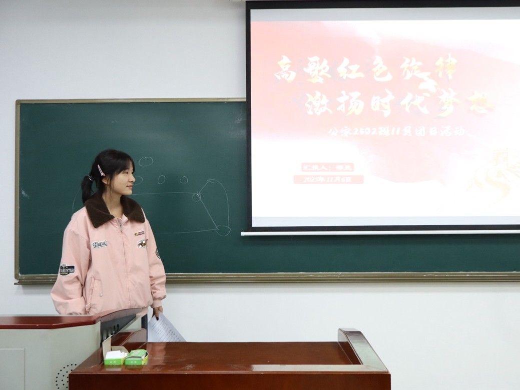 班会伊始,团支书邵昱深入阐述了经典歌曲作为精神瑰宝的深远意义。他指出,这些优秀作品不仅是时代的见证者,更是激励我们勇往直前的强大精神支柱。邵昱鼓励同学们结合自身对优秀文化精神的理解,共同探讨并民主推选最能代表班级心声的演唱曲目。