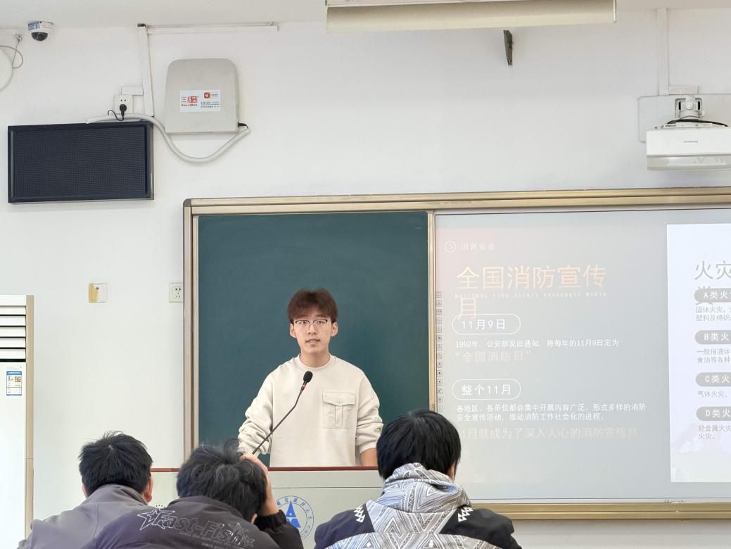 活动伊始,团支书赵金金围绕全国消防宣传月的由来进行讲解,让团员们深刻认识到消防安全宣传的重要意义。随后,通过图文结合的方式详细介绍了A、B、C、D四类火灾的分类标准,结合木材、汽油、煤气等常见火灾源,帮助大家精准识别不同火情及其特征。