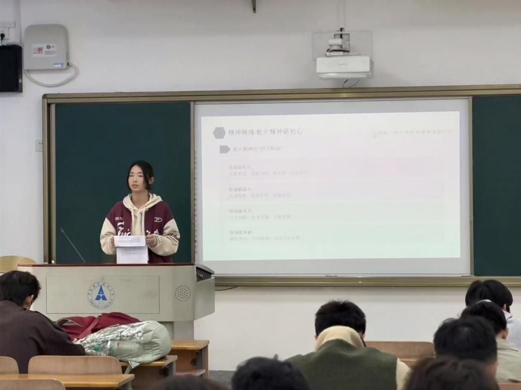 在精神分享环节,团支书重点阐释了航天领域“特别能吃苦、特别能战斗、特别能攻关、特别能奉献”的宝贵品质,并搭建起航天精神与专业成长的联结,将其中蕴含的执着、精准、协同等特质,与学子所需的职业素养相契合,为同学们的成长道路注入精神养分。