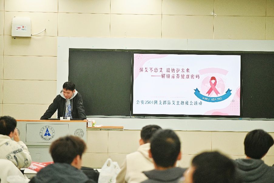 新闻网讯(学生通讯员 安宁 李珣 李明阳 柯维蓁 魏宇涵)为破除艾滋认知误区,提升青年防护意识,11月19日,公安2504团支部在文波108智慧教室成功举办“懂艾