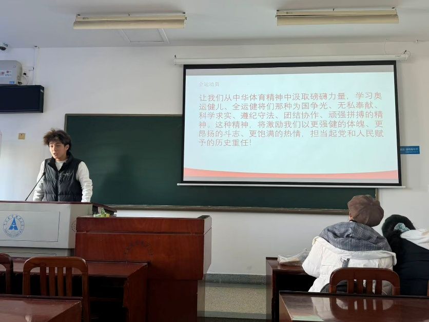 随后,团支书进一步讲解了体育运动对个人健康的益处,并阐述了体育在丰富生活、凝聚集体力量等方面的多元价值,引导同学们认识到体育运动是生活中不可或缺的重要组成部分。