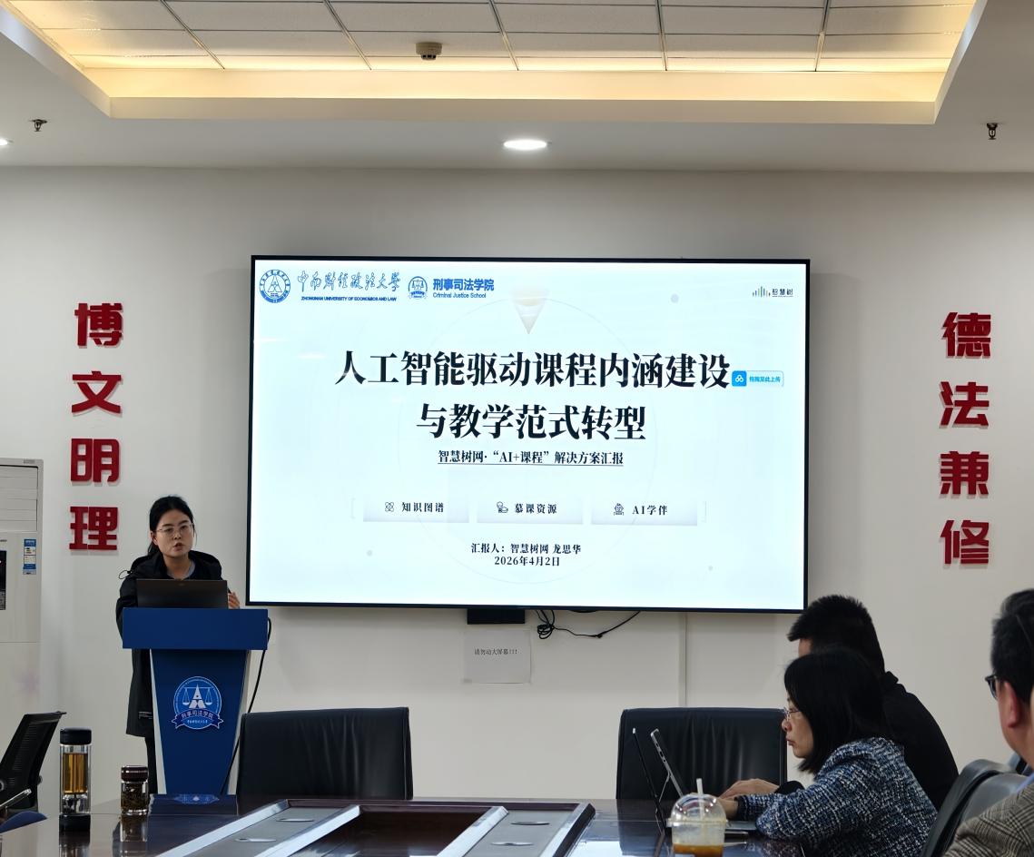 周院长详细介绍了本次教研活动举办背景、核心目标及议程安排。智慧树公司相关负责人龙思华女士立足高等教育数字化发展大势,结合我校教学改革实际,作了题为《人工智能驱动课程内涵建设与教学范式转型》的专题汇报,汇报从改革背景、实操路径、落地场景、成果验证、实施计划五大维度,系统阐释了AI技术赋能高校教学改革的核心逻辑与实践方案,为我校推进课程智慧化升级、实现教学范式转型提供了清晰指引与实操遵循。